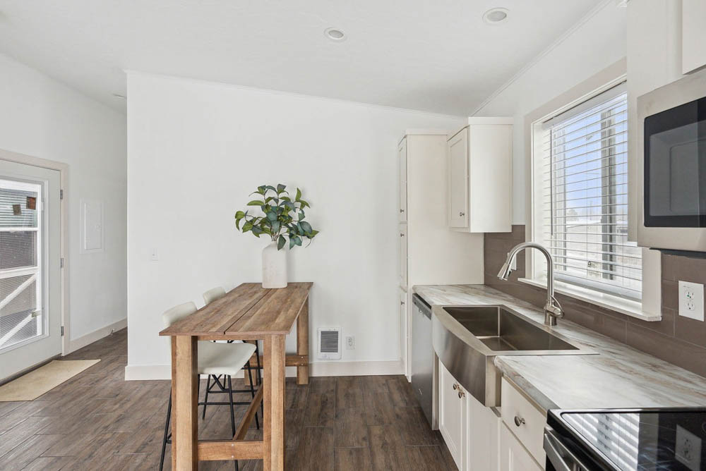 The Bradie model has 1 Bed and 1 Bath. This 485 square foot Single Wide home is available for delivery in Idaho, Washington, Oregon, Montana, Wyoming, North California, North Nevada & Utah.