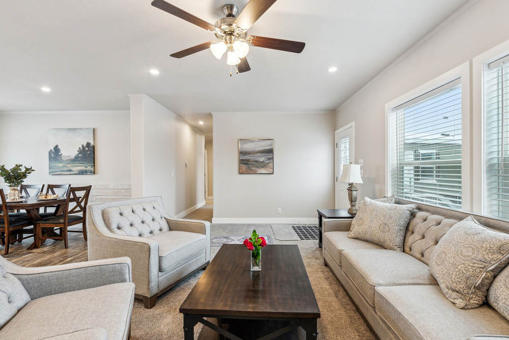 The Trestle model has 4 Beds and 2 Baths. This 2027 square foot Double Wide home is available for delivery in Idaho, Washington, Oregon, Montana, Wyoming, North California, North Nevada & Utah.